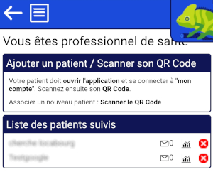 Vous pourrez ici ajouter vos patients en scannant leur QR Code et suivre leur résultats, vous pourrez aussi leur écrire ou eux vous écrire pour les questions relatives à votre suivi.